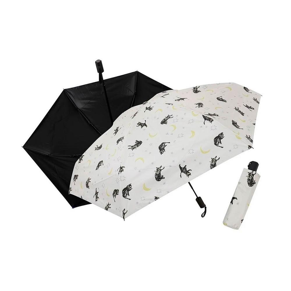 現貨 日本 大振豐 星空夜貓 寵物貓咪圖案 機能傘 晴雨傘 三折傘 白色