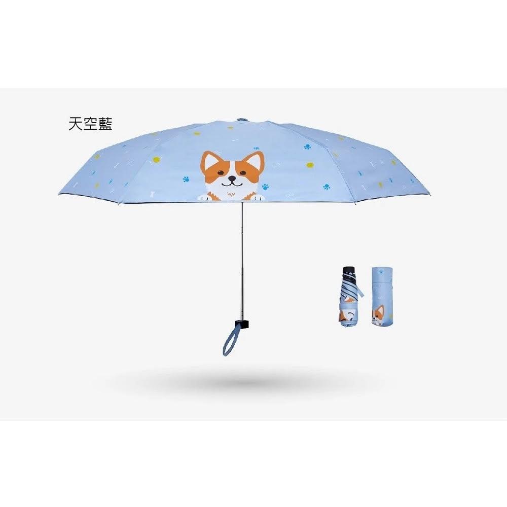 現貨 日本 大振豐 滿版柯基犬 全遮光口袋傘 寵物狗狗圖案 機能傘 晴雨傘 三折傘 天空藍