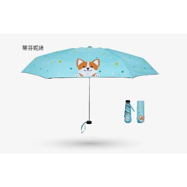 現貨 日本 大振豐 滿版柯基犬 全遮光口袋傘 寵物狗狗圖案 機能傘 晴雨傘 三折傘 蒂芬妮綠