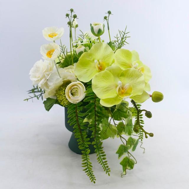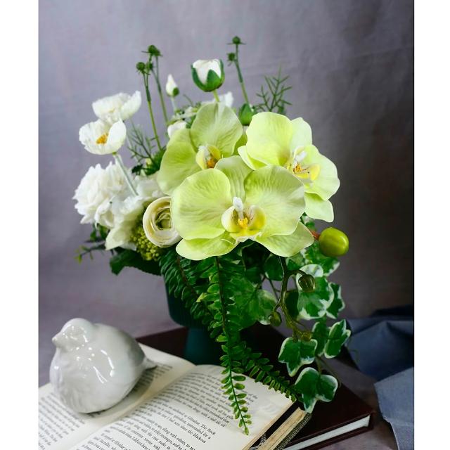 HUGO DECO 榆果傢飾綠蝴蝶蘭虞美人香氛花禮(擬真花/人造盆栽/綠化/佈置/禮物)