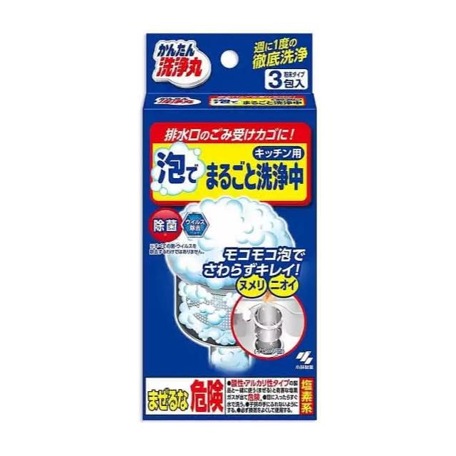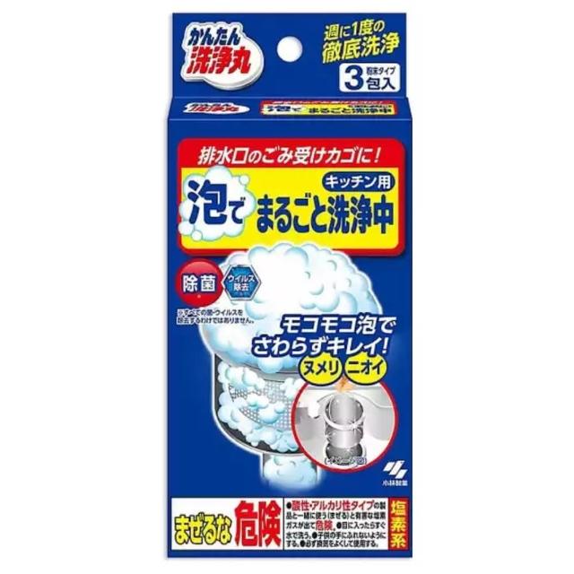 小林製藥小林製藥 排水孔泡沫清潔劑 3包 排水口清潔劑 徹底洗淨 排水孔提籠清潔劑 廚餘籃清潔 小林製藥排水口