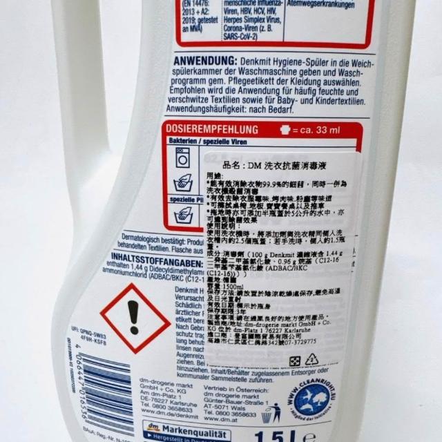 德國 denkmit 洗衣抗菌消毒液 無香衣物抗菌消毒液1500ml(嬰兒衣物消毒 敏感肌膚適用 環境消毒)