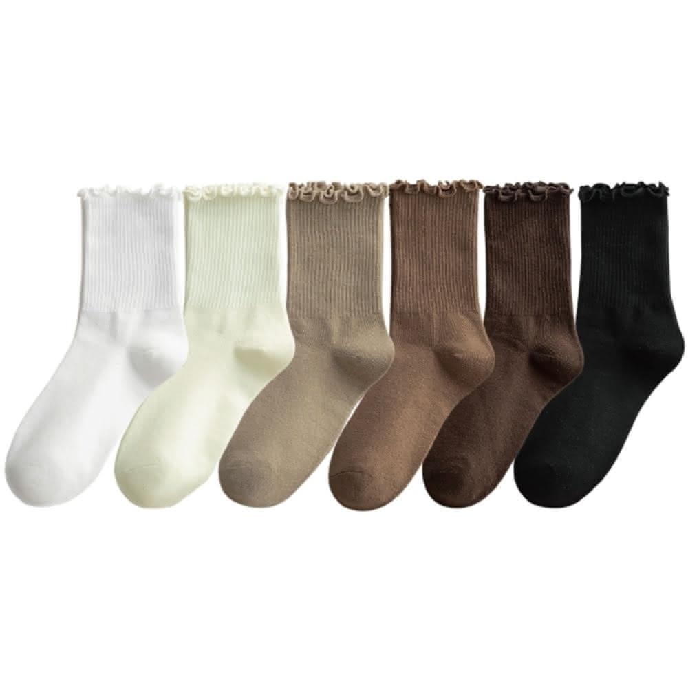 INS爆款 木耳花邊襪6雙入 花邊堆堆襪 麻花系短襪 花邊襪 日系可愛 森林系 中筒襪 女襪 襪子 中筒襪