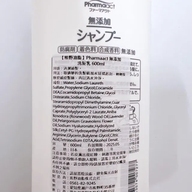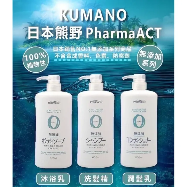 KUM 熊野日本 熊野 PharmaACT zero 無添加 本體 600ml (洗髮乳 潤髮乳 沐浴乳)