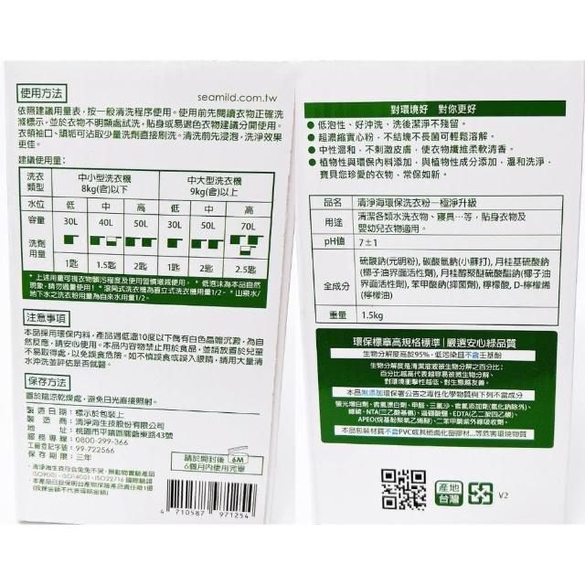 清淨海宅配箱出 環保洗衣粉 1500g 檸檬飄香 6盒/箱
