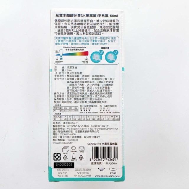 Chiccochicco 兒童木糖醇牙膏 不含氟 50ml 兒童牙膏 無氟