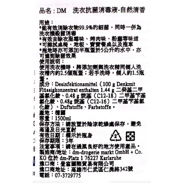 德國 Denkmit 洗衣抗菌消毒液 (敏感肌膚適用) 1500ml 自然香
