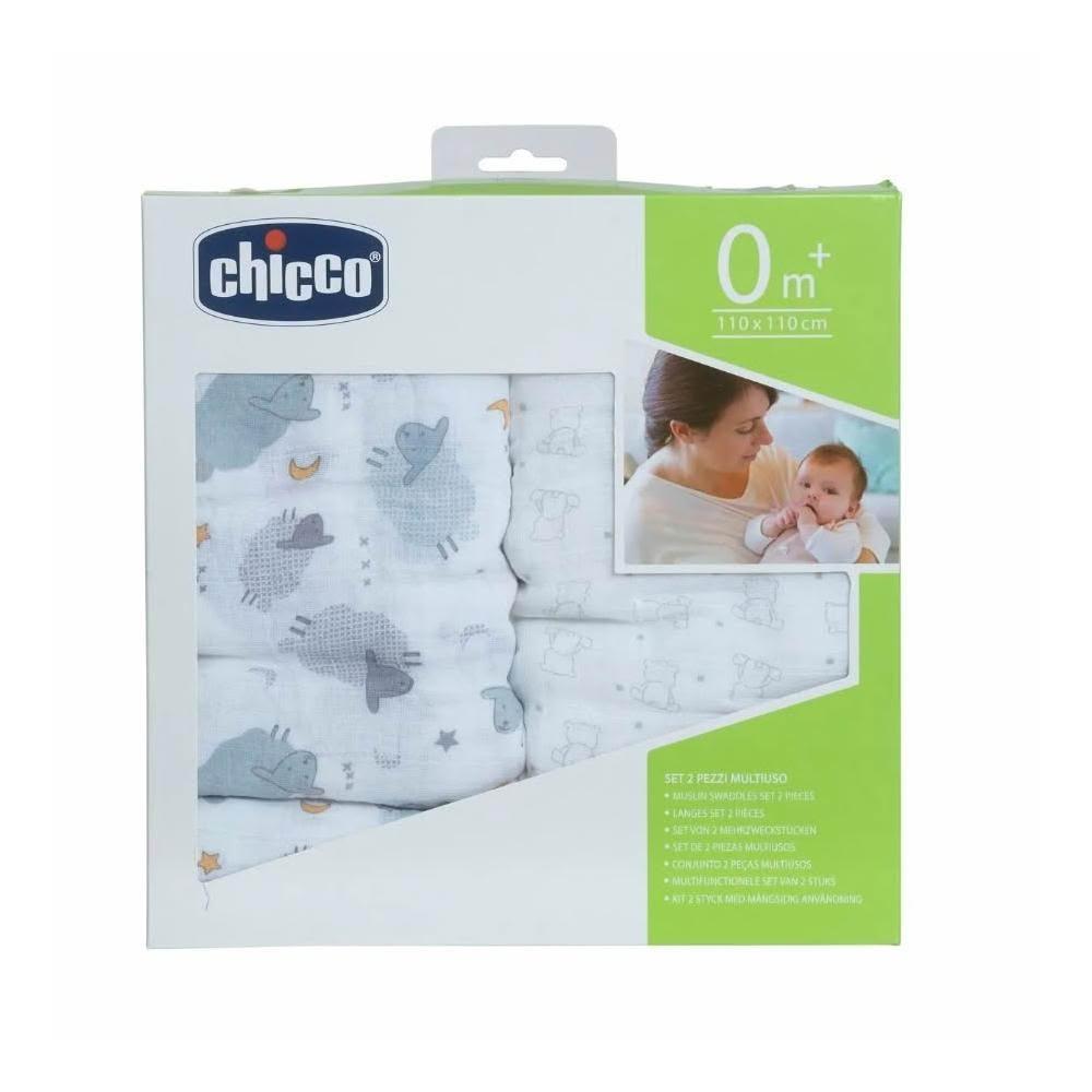 ChiccoChicco 寶貝嬰兒純棉透氣包巾毯 (2入) 跳跳羊&手繪熊