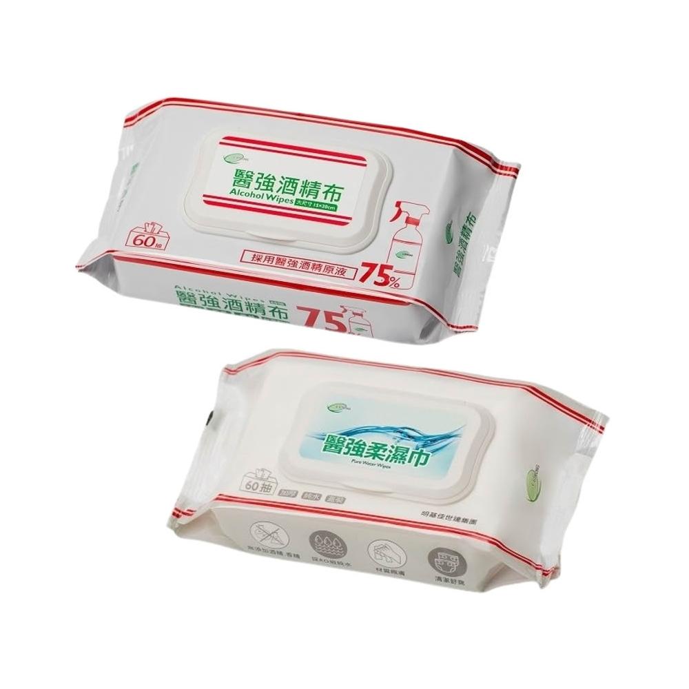 醫強醫強 純水柔濕巾 75%酒精布 酒精擦 60抽 含蓋 消毒 清潔 純水濕紙巾