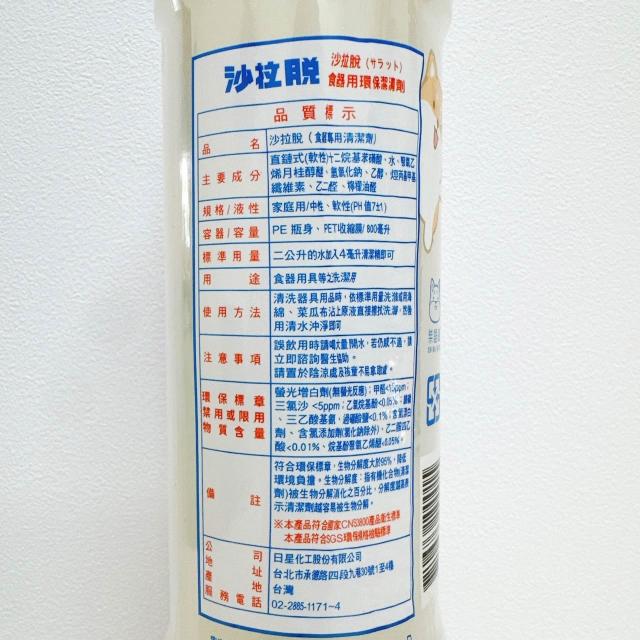 沙拉脫 洗碗精 廚房洗潔精 清洗食器 水果清潔 廚房用品 800ml 日星化工 碗盤清潔