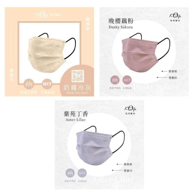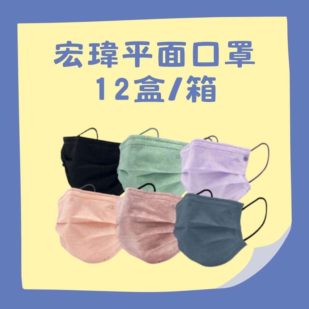 宏瑋宏瑋 滿版平面口罩 耳帶撞色 50入*12盒(3色*4盒)
