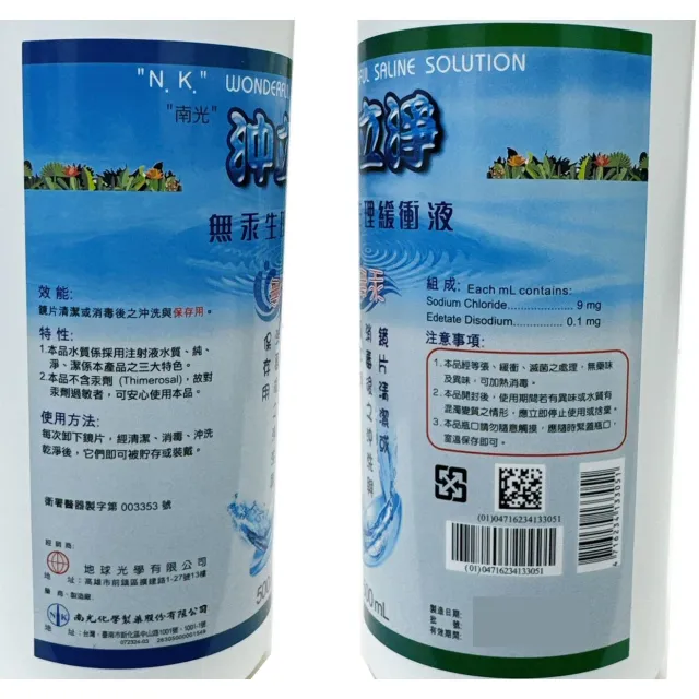 NANLITE 南光南光 沖立淨 無汞生理緩衝液 500ml (生理食鹽水)