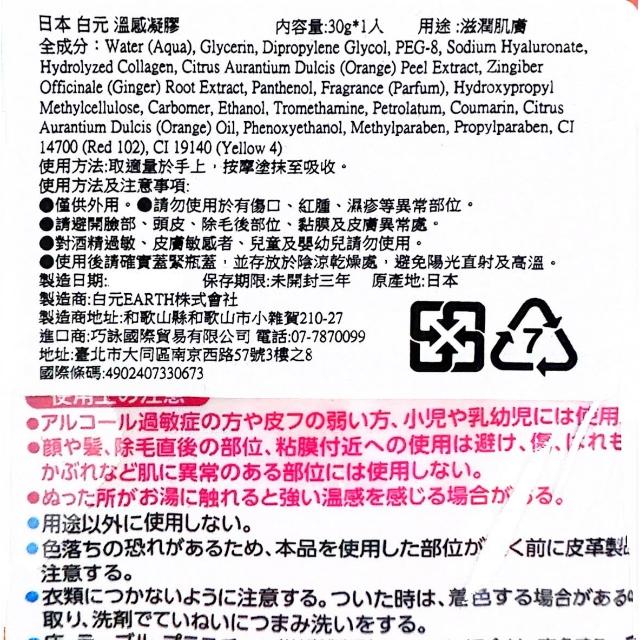 白元日本 白元 溫感凝膠 30g (暖暖霜 保濕 護手霜 乳膠 乳霜 護足霜)