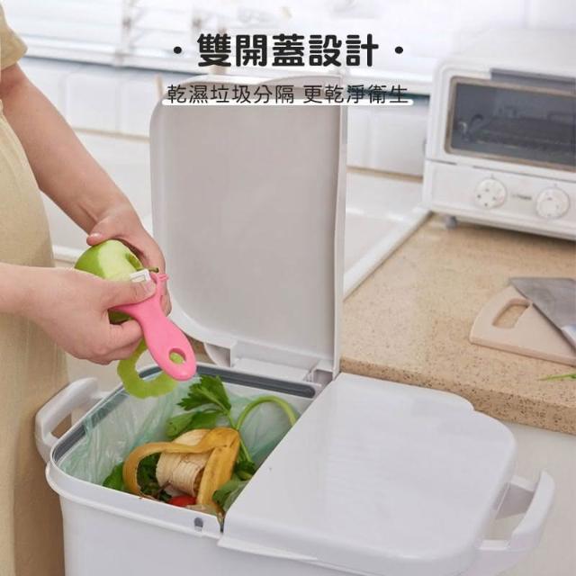 日式雙蓋雙層分類垃圾桶(垃圾桶 干濕分離 回收桶 大號垃圾桶 拉圾筒 廚房收納 廚房用品 廚餘桶 00888)