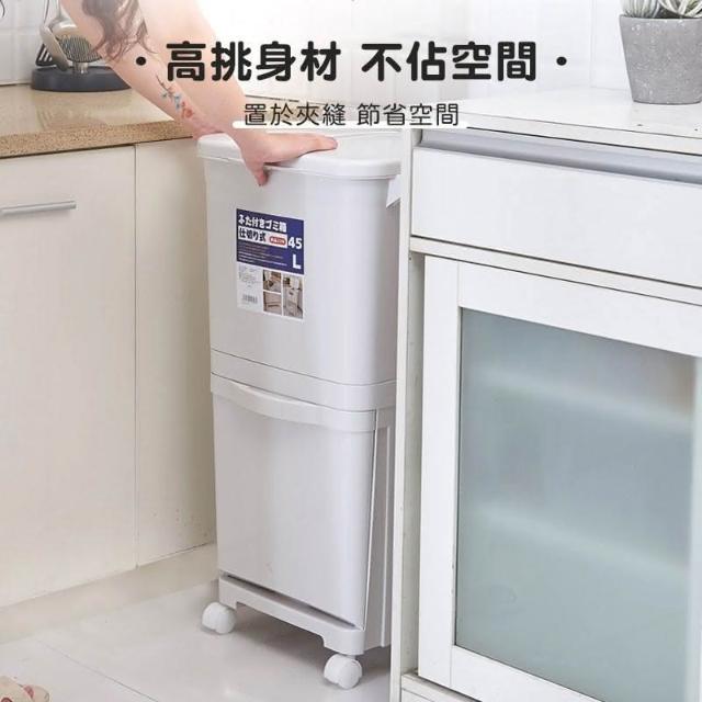 日式雙蓋雙層分類垃圾桶(垃圾桶 干濕分離 回收桶 大號垃圾桶 拉圾筒 廚房收納 廚房用品 廚餘桶 00888)