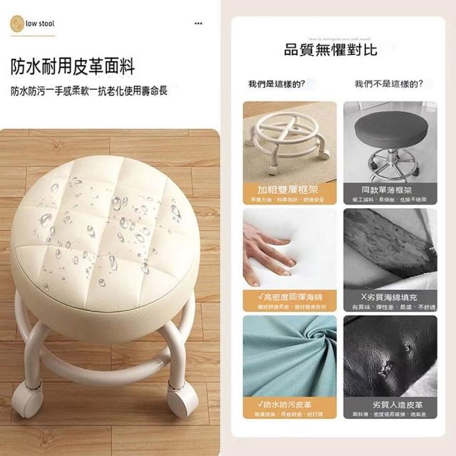 萬向滑輪皮革圓凳 (帶輪圓凳椅 小椅子 小椅凳 皮革椅子 帶輪皮革椅 工作椅 椅凳 滑輪椅 滑輪矮凳 60521)