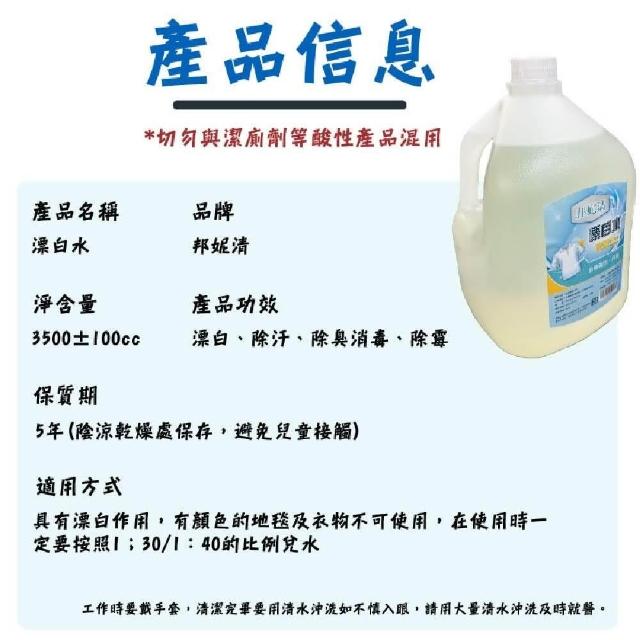 邦妮清 漂白水 3500ML 大容量 次氯酸水 去污劑 頑垢去除 洗衣神器 清潔漂白水 3.5kg 環境清潔