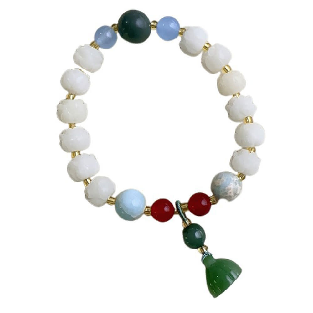 Jpqueen白蓮花菩提根手串佛珠中國風串珠手鍊(白色)