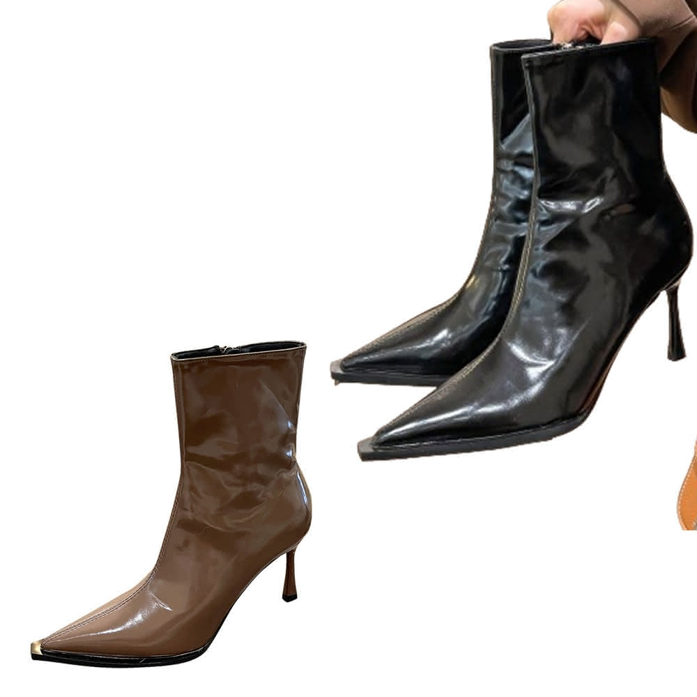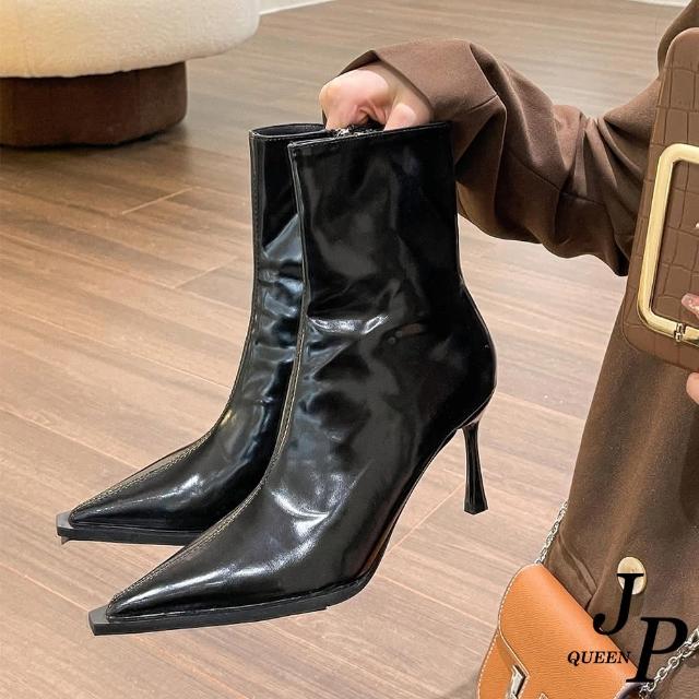 JP Queen New York氣質女神漆皮尖頭瘦腿細跟短靴(3色可選)