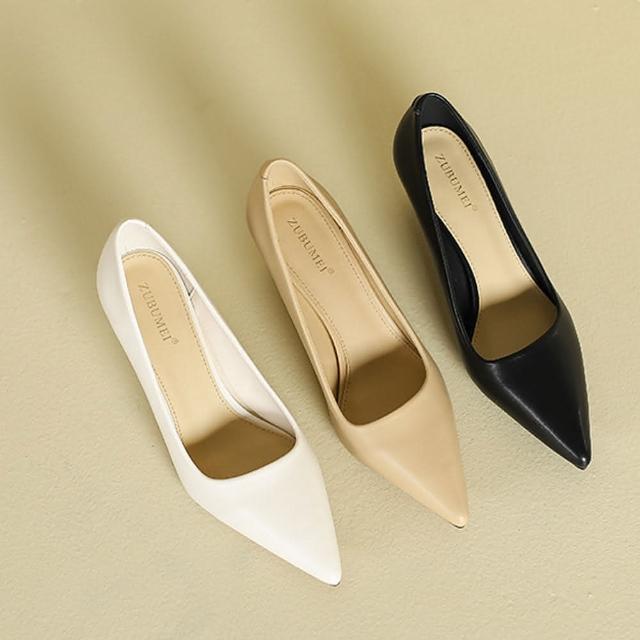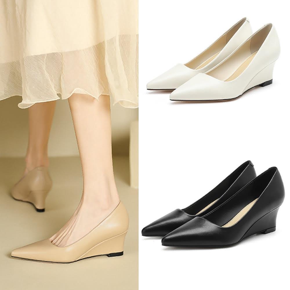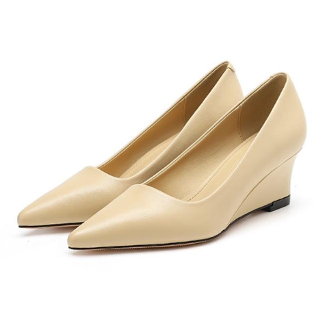 JP Queen New York純色淺口尖頭坡跟高跟鞋工作鞋(3色可選)