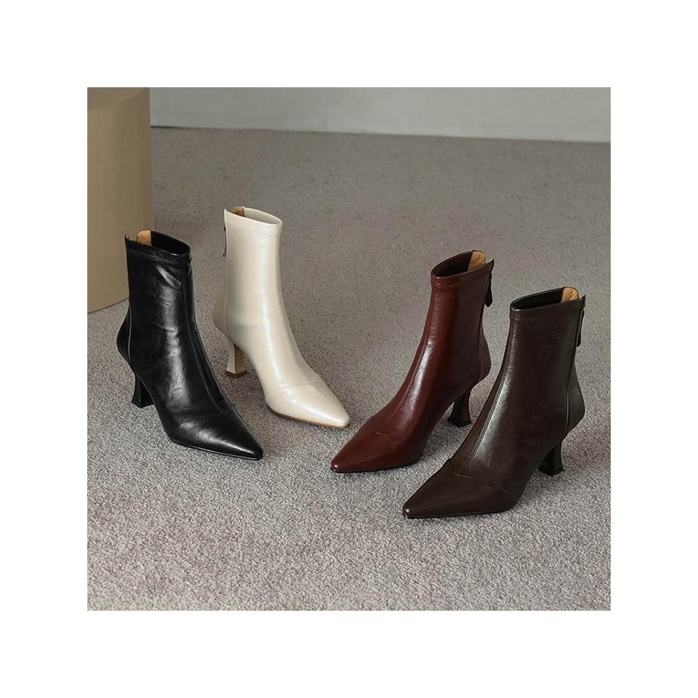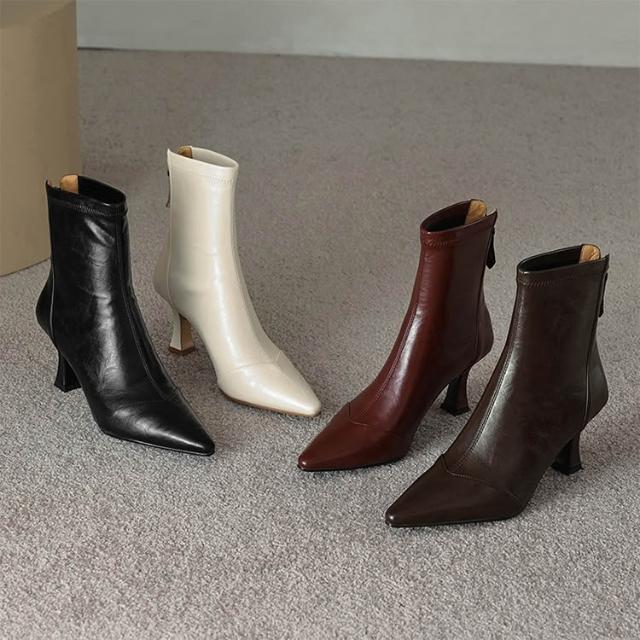 JP Queen New York女神風尚尖頭後拉鍊彈力顯瘦細高跟短靴(4色可選)
