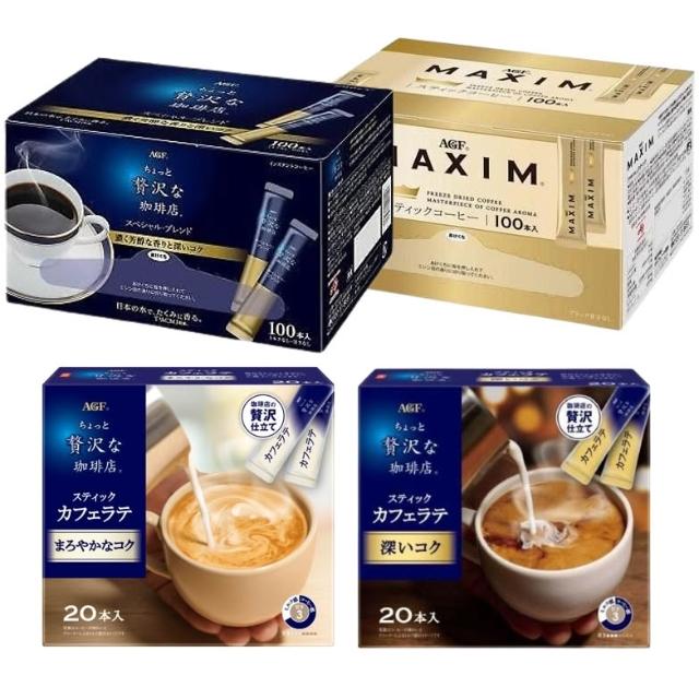 AGF日本 AGF MAXIM 無糖黑咖啡/拿鐵 隨身包 100入/20入 贅沢 奢華嚴選濃郁金爵黑咖啡(即溶咖啡)