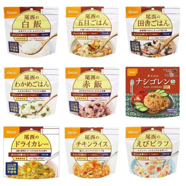 日本 尾西 沖泡式 即食飯 乾燥飯 防災食品 登山食品 日本國產米 泡飯 雞肉飯 咖哩飯 蝦仁飯 什錦飯