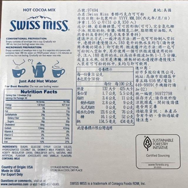 SWISS MISSSwiss Miss 即溶可可粉 香醇巧克力 31公克 X 50入