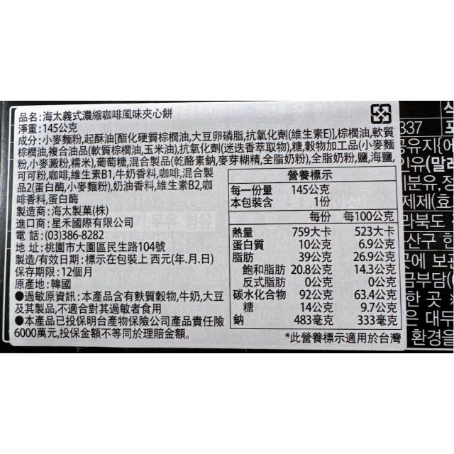 HAITAI 海太韓國 海太 HAITAI 巧克力夾心餅 義式濃縮咖啡風味夾心餅 夾心餅乾 蘇打餅乾