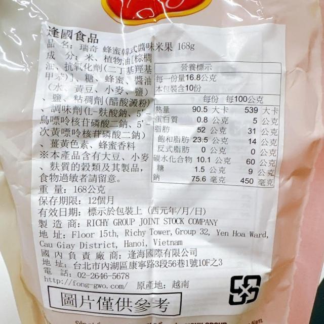 Richy瑞奇 RICHY 蜂蜜韓式醬味米果 米果 分享包 韓式蜂蜜米果 韓式 醬燒 餅乾