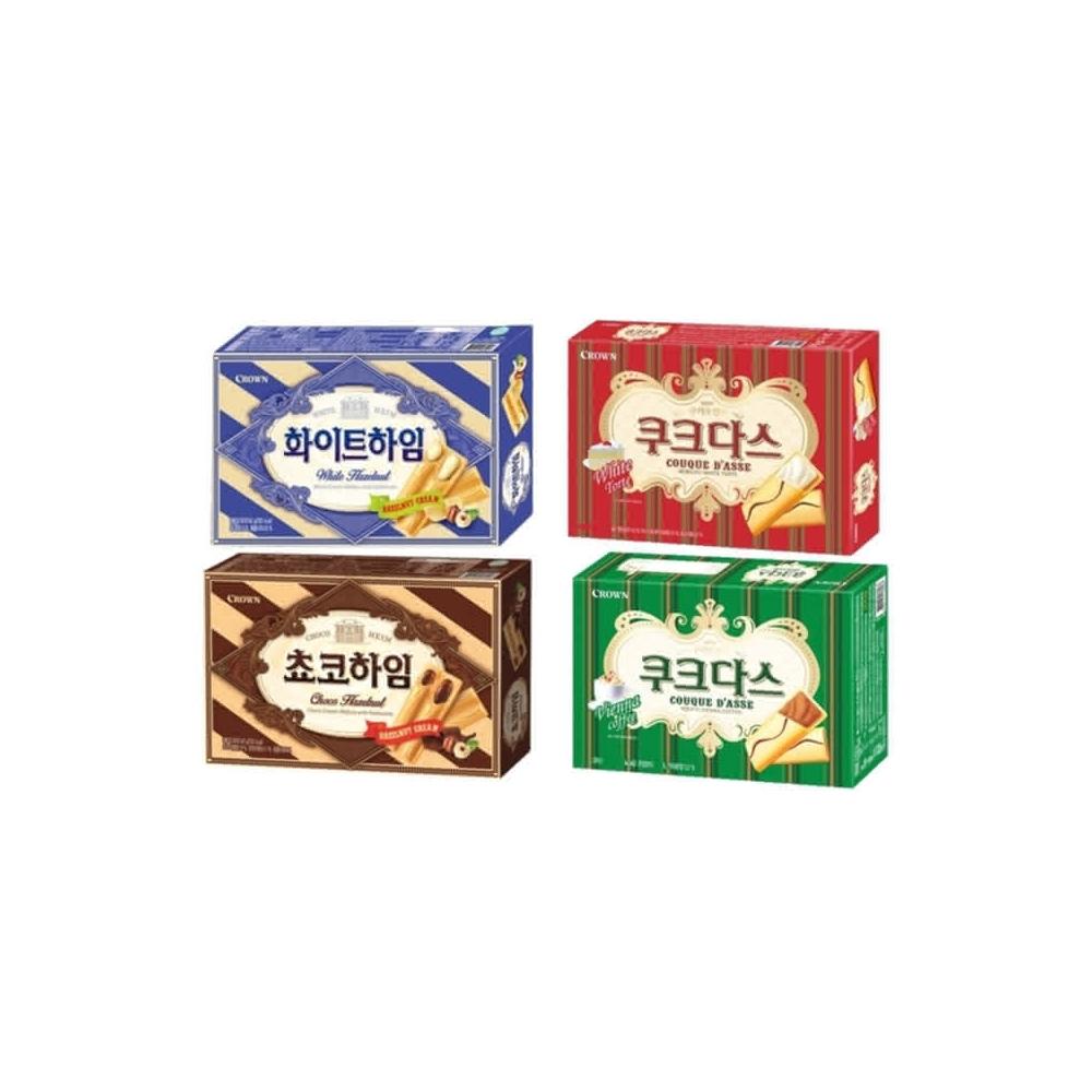 CROWN 皇冠韓國 CROWN 威化酥 榛果巧克力 法式奶油夾心 法式薄燒夾心餅 威化餅 咖啡夾心酥 白巧夾心酥 薄燒餅