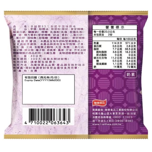 卡迪那卡廸那 95℃鮮脆芋頭條原味 40公克 X 10包