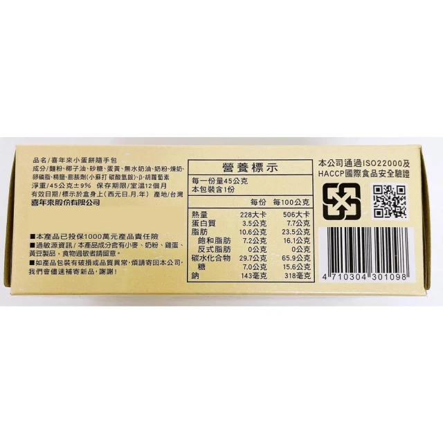 喜年來喜年來 小蛋餅 盒裝 45g (蛋奶素)