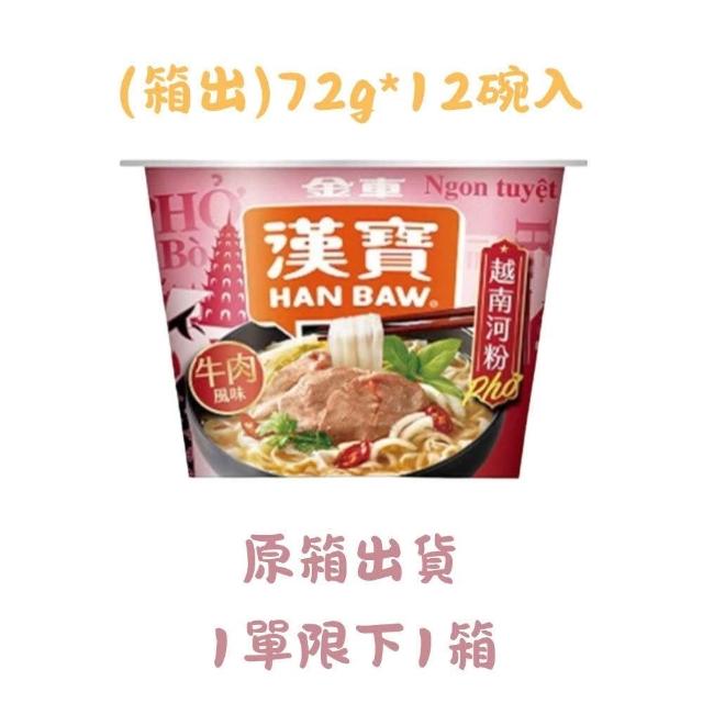 金車/伯朗(箱出)金車 漢寶 越南河粉 12碗入 (牛肉/雞肉)