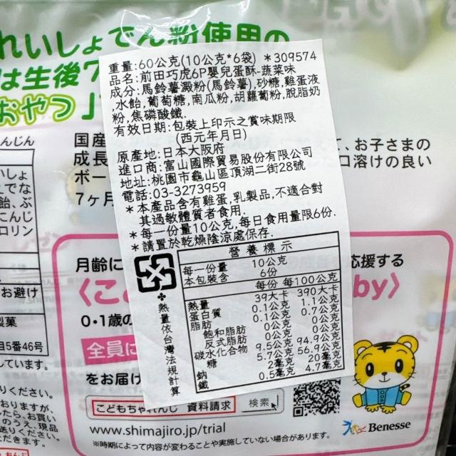 前田製果森吉百貨 前田嬰兒巧虎蛋酥 6袋入 原味/野菜 嬰兒蛋酥