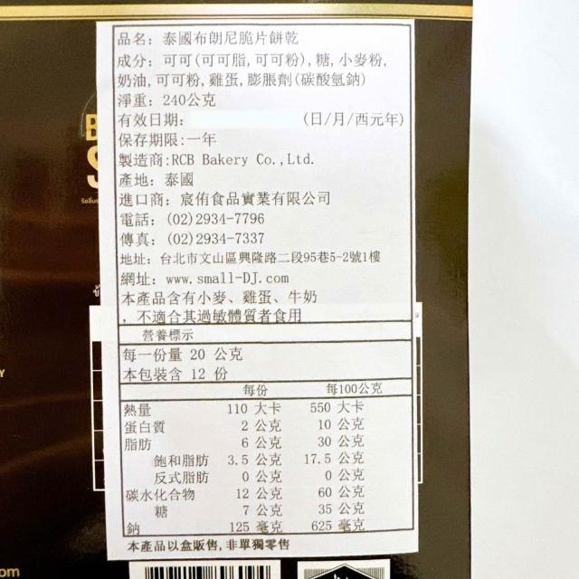 Richy(盒出)泰國 布朗尼脆片餅乾 20g Richly Brownie 巧克力脆片 可可脆片 12入/盒
