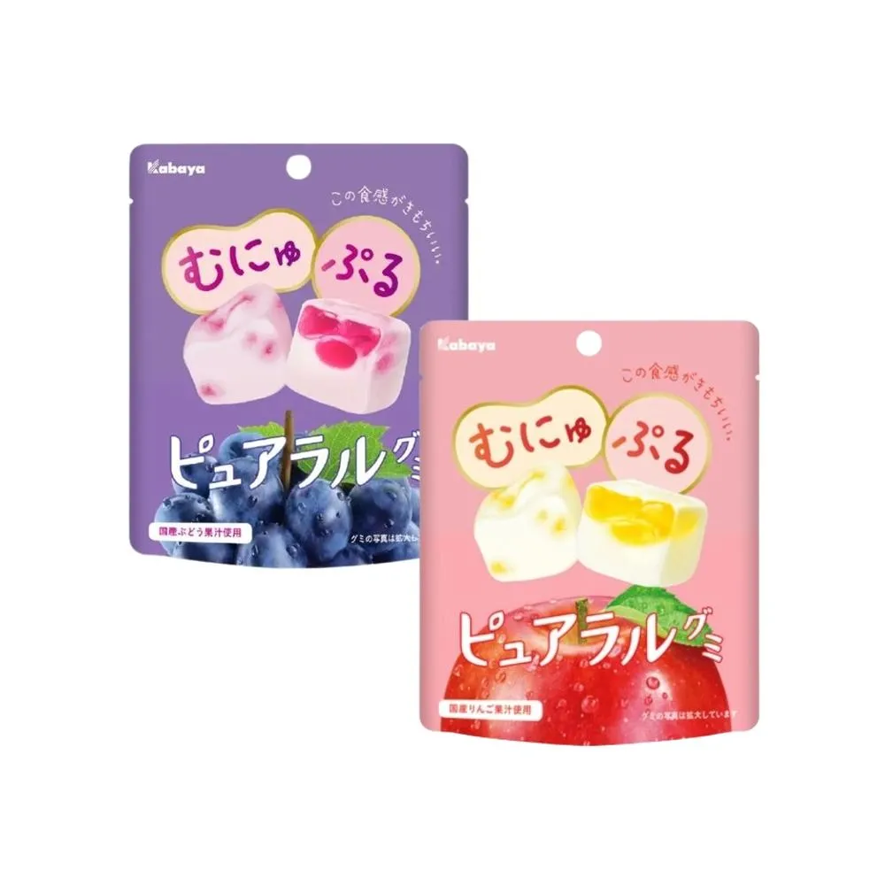 Kabaya 卡巴日本 卡巴 Kabaya 雙重口感方塊軟糖 (水果軟糖 葡萄 蘋果 草莓夾心軟糖 pureral 雙層軟糖)