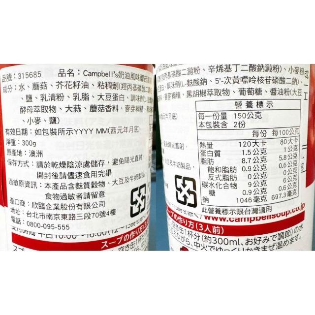 金寶湯Campbells 金寶 奶油風味蘑菇濃湯 300公克 X 10入