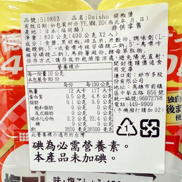 DAISHO日本 Daisho 大昌 胡椒鹽 400g 225g 好市多 調味料 調味粉 調味 胡椒粉