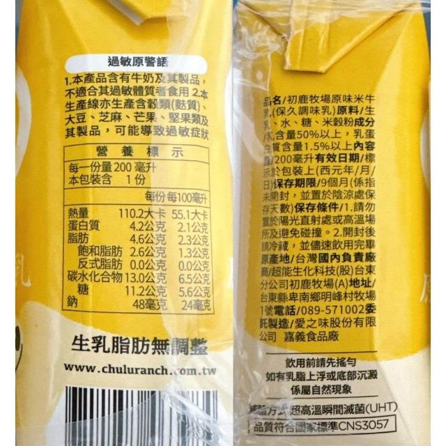 初鹿牧場初鹿牧場 保久乳 米牛乳 原味保久乳 200mlX6瓶 (100%初鹿生乳使用)