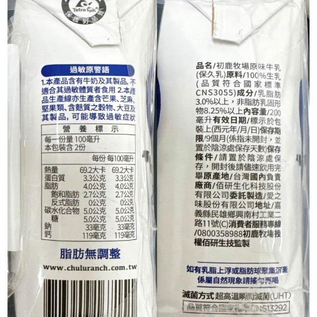 初鹿牧場初鹿牧場 保久乳 米牛乳 原味保久乳 200mlX6瓶 (100%初鹿生乳使用)