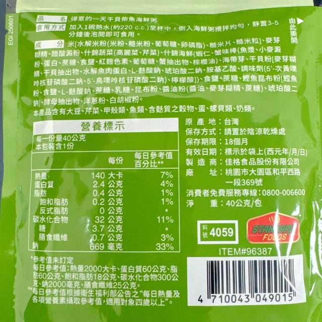 得意的一天得意的一天 海鮮粥 干貝柴魚海鮮 40g