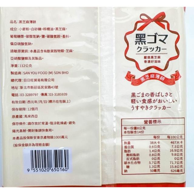 RIH RIH WANG 日日旺日日旺 黑芝麻薄餅 薄脆餅乾 薄餅 袋裝 全素 獨立包裝
