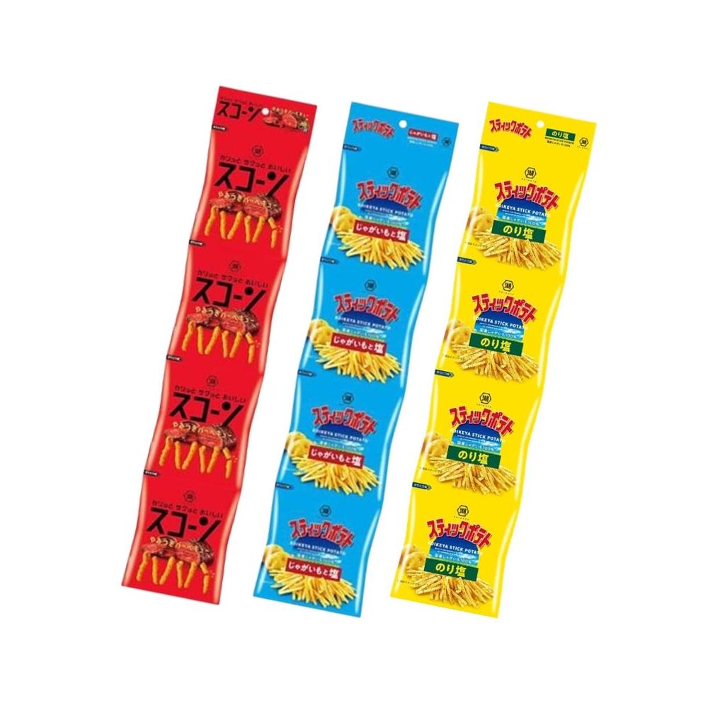 KOIKEYA 湖池屋湖池屋 4連洋芋薯條 鹽味/海苔鹽 BBQ味玉米條餅 (四連包 薯條 薄鹽 海苔鹽 脆薯 四連包餅乾 零食 鹽味薯條)