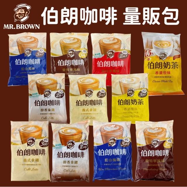 MR.BROWN 伯朗金車 伯朗咖啡 量販包 沖泡咖啡 30入/45入 (伯朗奶茶 曼特寧 藍山 卡布奇諾 義式拿鐵 二合一 三合一)