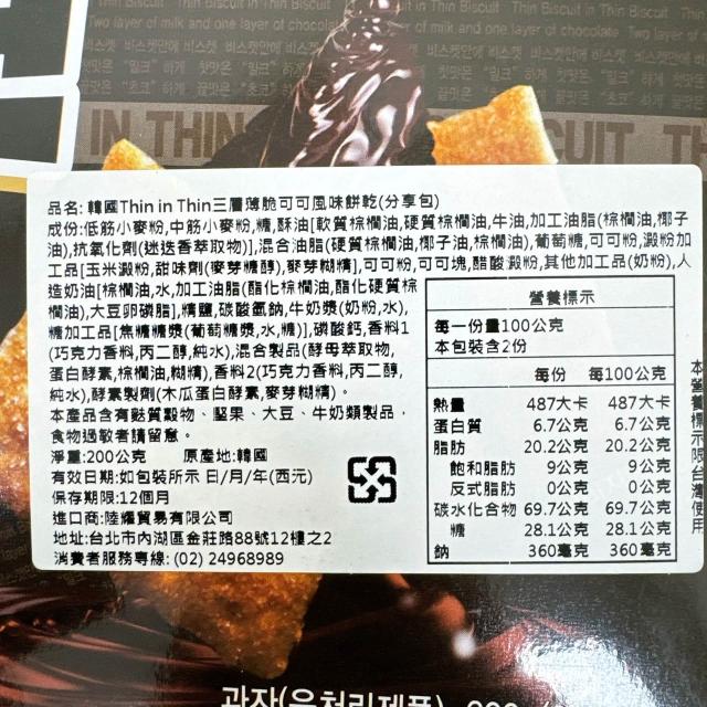 韓國 Likesky Thin in thin 三層薄脆巧克力夾心餅乾 (TIT 夾心餅 三層巧克力)