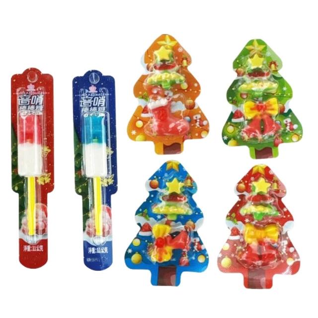 RIH RIH WANG 日日旺日日旺 聖誕樹造型軟糖 雙色音哨棒棒糖 (可吹口哨的糖 棒棒糖 軟糖 聖誕QQ糖 馬來西亞)