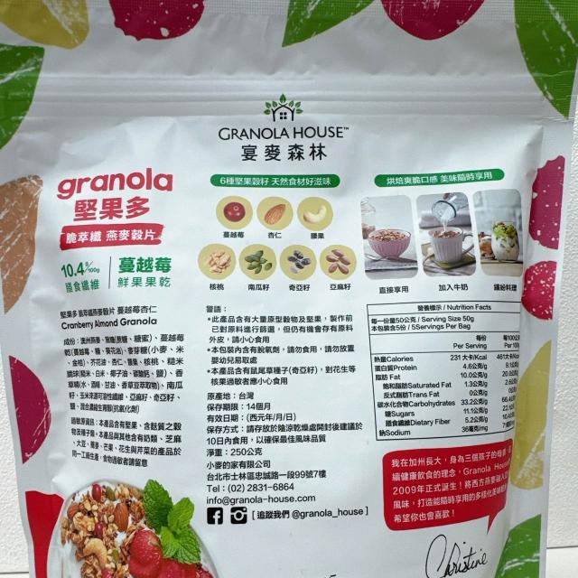 Granola House宴麥森林 脆萃纖燕麥穀片 堅果多/脆米花 250g (燕麥穀片 堅果麥片 早餐麥片 Granola House)