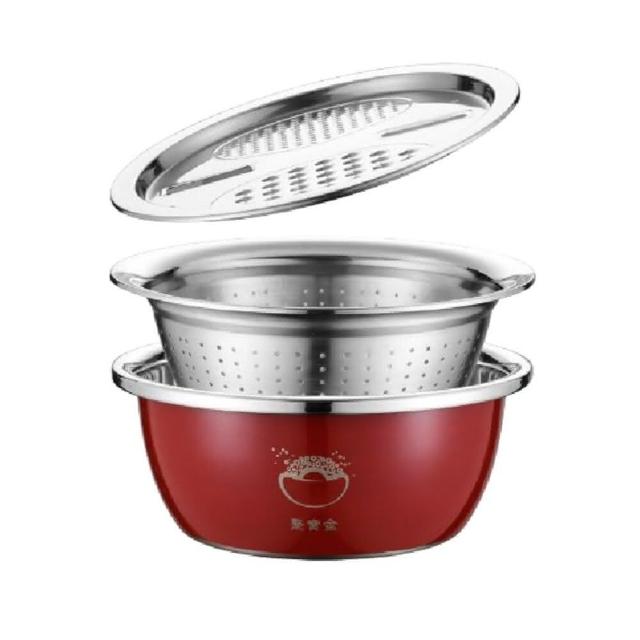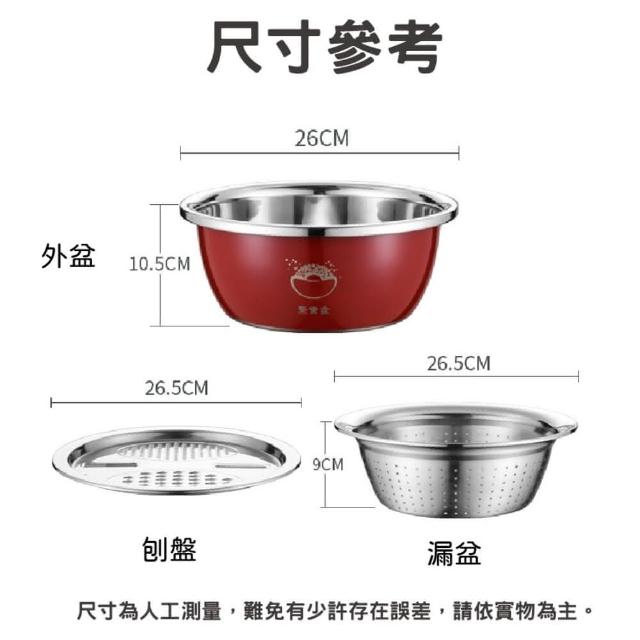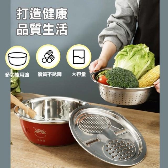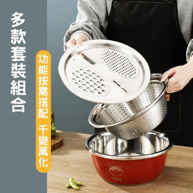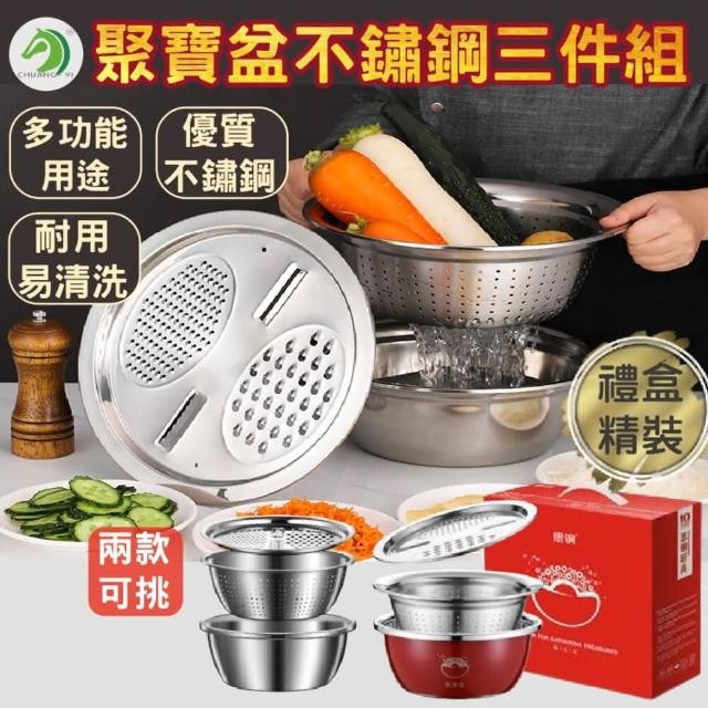 創藝聚寶盆款-不鏽鋼刨絲盆三件組 禮盒精裝(多功能切菜盆 刨絲盤 不鏽鋼切菜 洗菜漏盆 多功能瀝水籃)