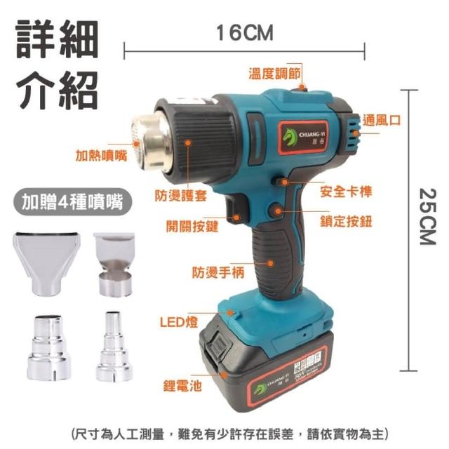 創藝鋰電熱風槍 贈一電一充+4種噴嘴(二段式充電熱風槍 塑料焊槍 熱縮膜烤槍 焊接熱風槍 電動工具)